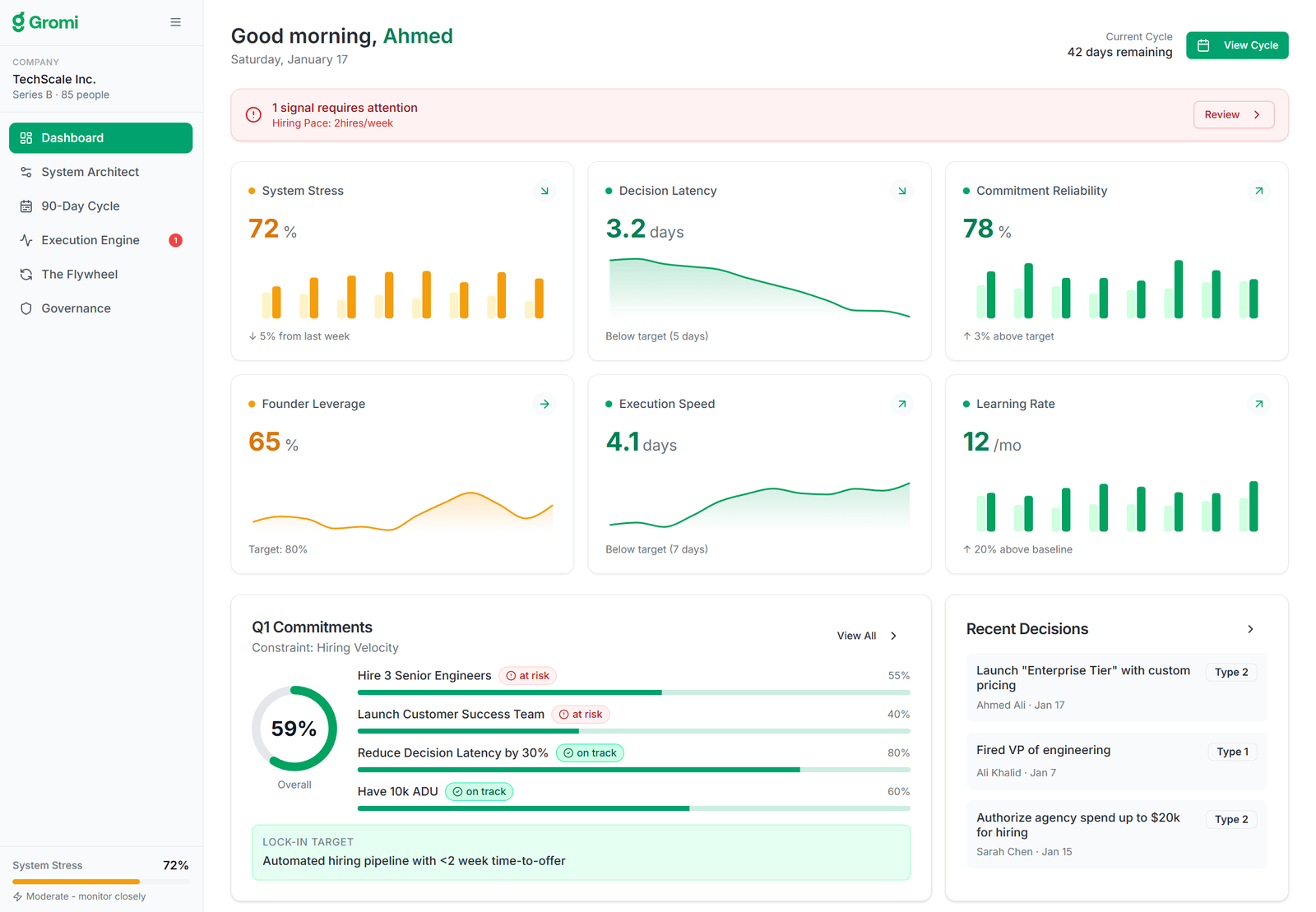 Ambition without structure burns out. Gromi is the only platform that combines a proprietary methodology, expert human advisory, and AI-driven software to bridge the gap between strategy and execution.